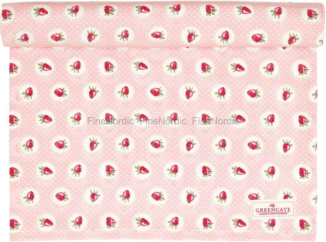 Lieben Sie Erdbeeren? Und nicht nur wie sie schmecken, sondern auch wie sie aussehen? Dann schauen Sie sich diesen Tischläufer Strawberry Pale Pink von GreenGate an. Der hellrosa Hintergrund ist mit kleinen Punkten und runden Kreisen bedeckt. In der Mitte von jedem Kreis ist eine appetitanregende Erdbeere abgebildet. Sie verleiht Ihrem Tisch im Esszimmer oder auf der Terrasse etwas Sommerfrische. Auf vielen Produkten von GreenGate können Sie Erdbeeren finden. Nicht nur bei der Strawberry Pale Pink Serie, sondern auch bei der Mary White Serie, der Strawberry Pale Green Serie und den Strawberry Red Produkten. GreenGate, ein wahres Paradies für Erdbeerfans.