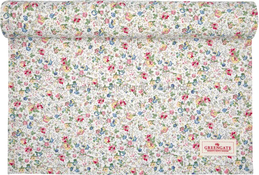 Tischläufer sind großartige Alternativen zu Tischdecken, da sie dem Tisch Farbe und Textur verleihen, aber seine schöne Oberfläche nicht vollständig abdecken. Der hübsche Vivianne White Tischläufer von GreenGate ist mit zierlichen kleinen Blumen in gut aufeinander abgestimmten Farben dekoriert und das markante GreenGate Label ist ebenfalls darauf zu sehen. Verwenden Sie ihn auf dem Küchenbuffet oder dem Terrassentisch und sein toller Look lässt den jeweiligen Tisch noch schöner aussehen. Der Baumwolltischläufer kann in Kombination mit dem Vivianne White Porzellan sowie mit Geschirr aus anderen GreenGate Serien verwendet werden.