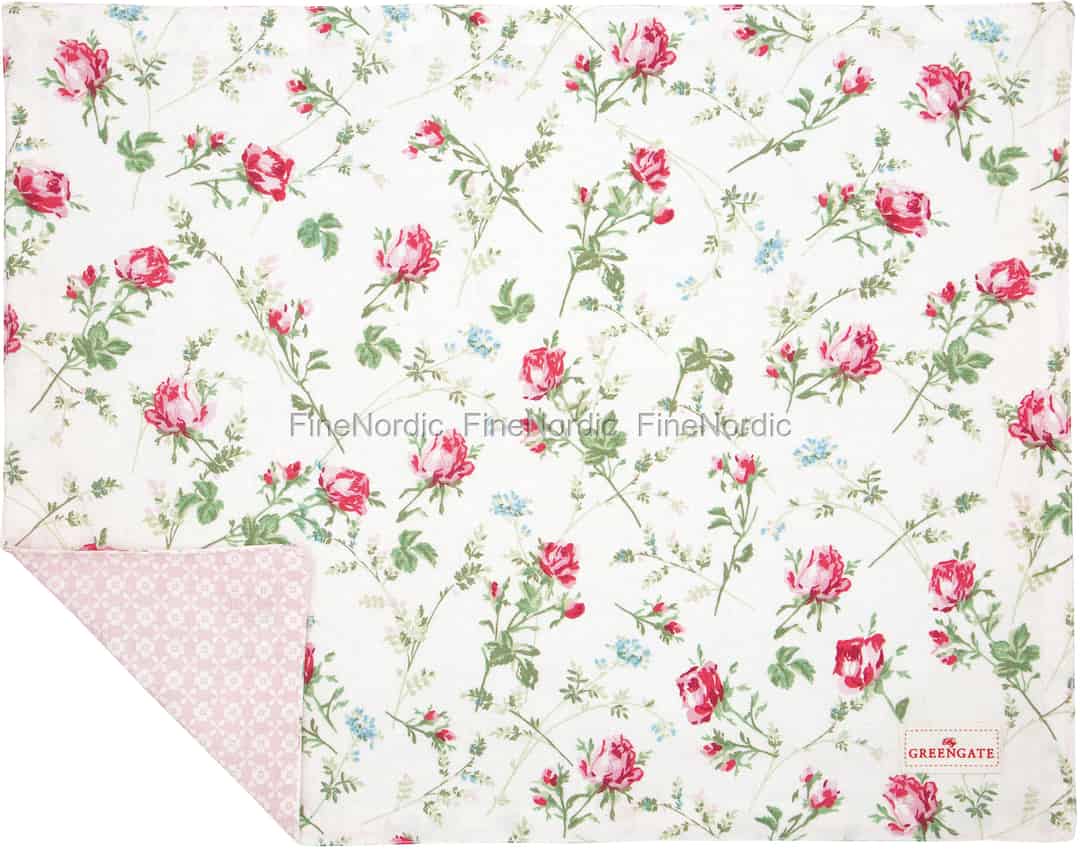 Sind Sie kein Fan von Tischdecken, möchten aber Ihren Tisch während des Abendessens gut schützen? Dann sind Tischsets die perfekte Alternative für Sie. Besonders wenn es um ein hübsches Tischset wie dieses Constance White von GreenGate handelt. Das Baumwolltischset ist mit dem wunderschönen Constance White Rosenmuster auf der Vorderseite und dem Helle Pale Pink Design auf der Rückseite verziert. Die rechteckige Platzmatte ist eine attraktive und sehr nützliche Unterlage für den Teller, das Glas und das Besteck und schützt Ihren Tisch vor Wasser- sowie auch Essensflecken oder auch Wärmeschäden. Wir haben eine schöne Auswahl an GreenGate Tischsets in unserem Webshop verfügbar. Sie finden sie in allen verschiedenen Farben und Mustern und auch aus verschiedenen Materialien.