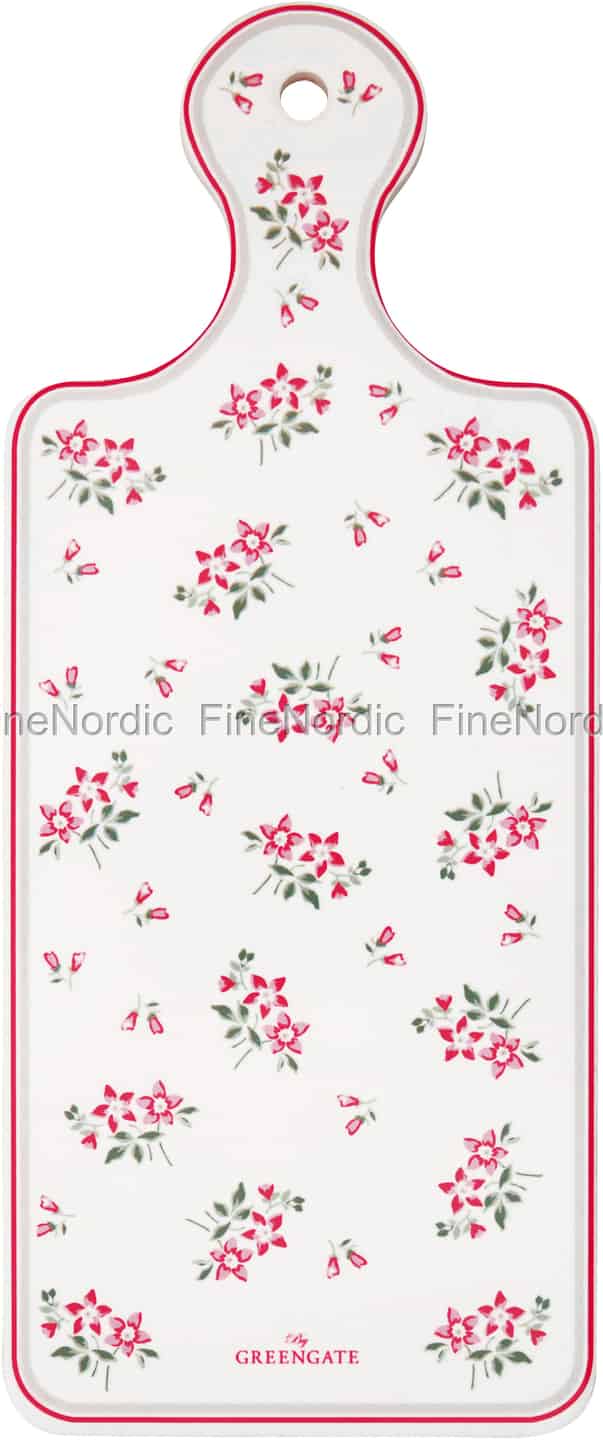 Das Avery White Untersetzer Brett von GreenGate ist mit einem hübschen Blumenmuster in grün und rot geschmückt, welches auf dem weißen Hintergrund ganz besonders hervorsticht. Entlang der Kante sieht man sowohl eine rote, als auch eine graue Linie und im Griff des Brettes befindet sich eine runde Öffnung, mit der es leicht an einem Küchenhaken angehängt werden kann. So ist es immer griffbereit, wenn es mal wieder zum Einsatz kommen soll. Nutzen Sie es als Servierbrett und servieren Sie damit Ihren Gästen ein paar kleine Häppchen oder ein paar verschiedene Ecken Käse, oder verwenden Sie es als Untersetzer für ein Schüsselchen oder Töpfchen, um so Ihren Tisch zu schützen. Das hübsche Porzellanbrett, mit seiner Korkrückseite, kann vielseitig angewendet werden und es kann gut mit den anderen Avery White Produkten kombiniert werden. Mit seinem gutaussehenden rot-grünen Muster, ist es außerdem auch ein tolles Tischaccessoire während der Weihnachtszeit.