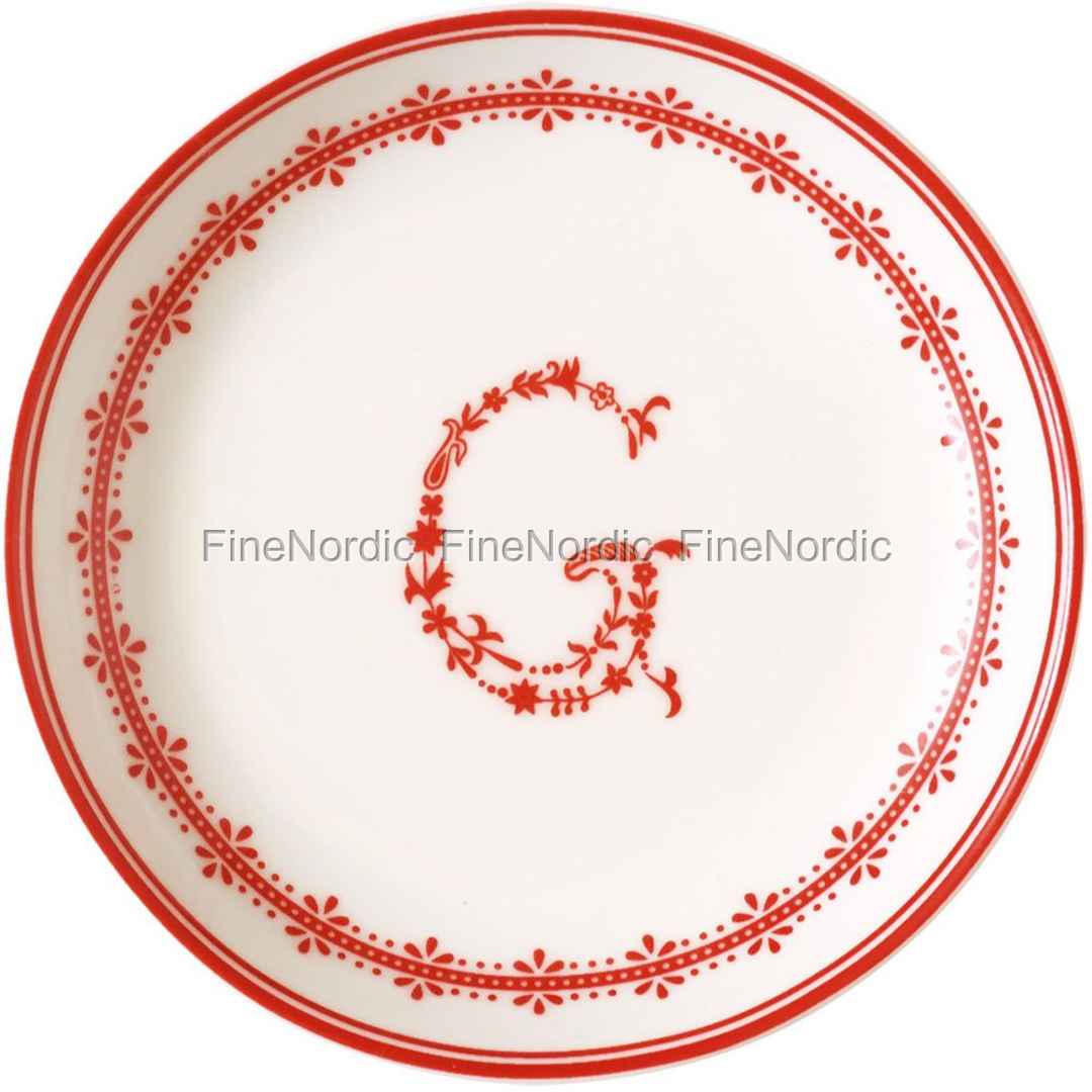 Die Untertasse G Red von GreenGate ist einfach ein hübsches kleines Tellerchen. Ob als Untertasse genutzt oder als kleiner Beilagenteller, das bestimmen ganz alleine Sie. Gut kann man eine Tasse auf ihr abstellen und schon hat man auch einen Abstellplatz für seinen Löffel. Aber auch zum drauflegen von kleinen Häppchen oder Keksen ist sie gut zu gebrauchen. Das verschnörkelte rote G in der Mitte, umrundet von einer hübschen Bordüre und roten Linien machen den Teller zu einer wahren Augenweide. Der Unterteller G Red kann außerdem gut mit den Produkten der GreenGate Alice Red Serie kombiniert werden.