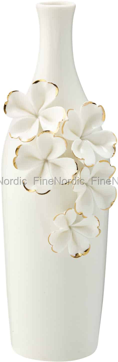 Lieben Sie auch die delikaten Vasen von GreenGate? Dann möchten Sie vielleicht auch diese hier Ihrer Sammlung hinzufügen. Die Vase Flower White hat eine attraktive schlanke Form und ist mit Blütenblättern mit goldfarbenen Details verziert. Sie sieht für sich allein schon großartig aus, oder Sie können sie auch mit einigen anderen GreenGate Vasen kombinieren. Dekorieren Sie Ihre Fensterbank, Ihr Regal oder Ihren Tisch mit dieser attraktiven GreenGate Vase. Sie ist auch eine schöne Geschenkidee für einen GreenGate-Fan.