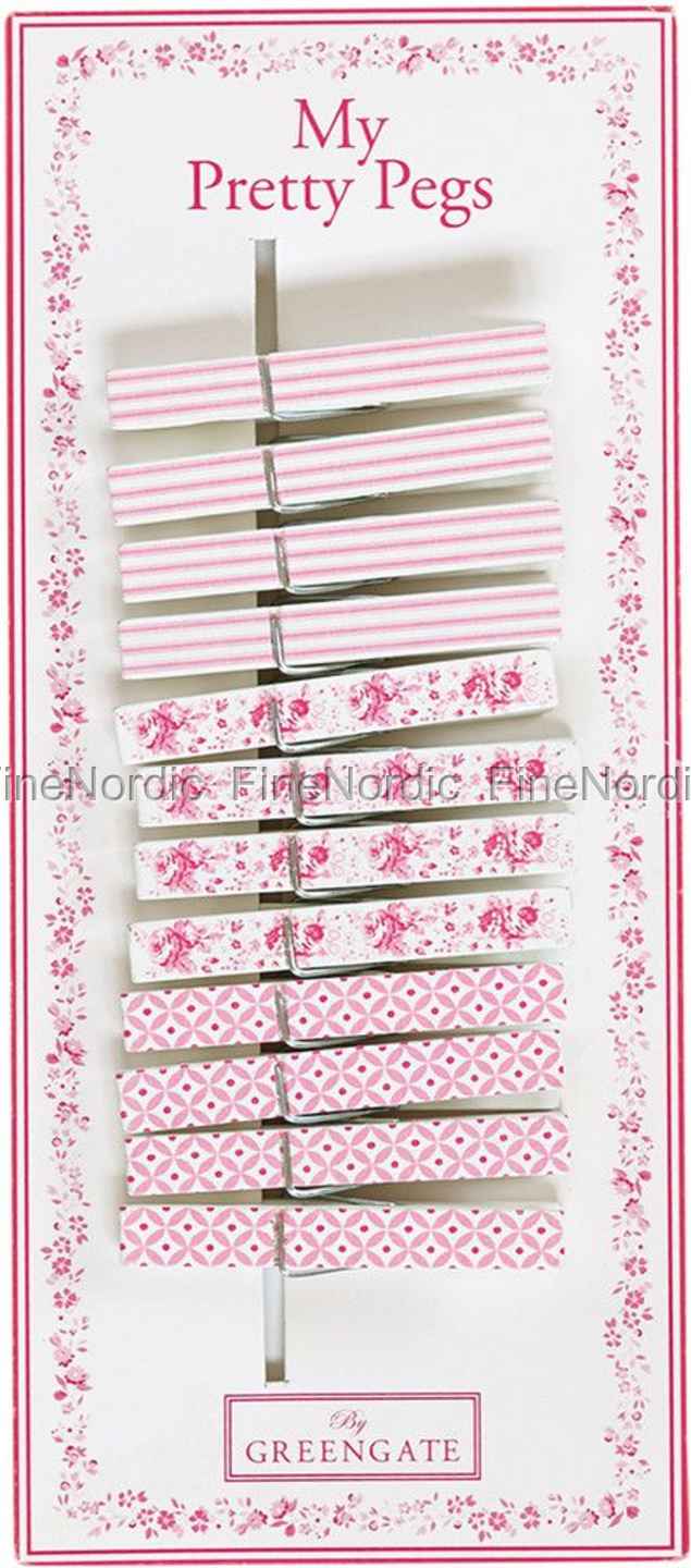 GreenGate Wäscheklammern - Pegs Wooden Abelone Raspberry 12 Stück - Assorted - Large