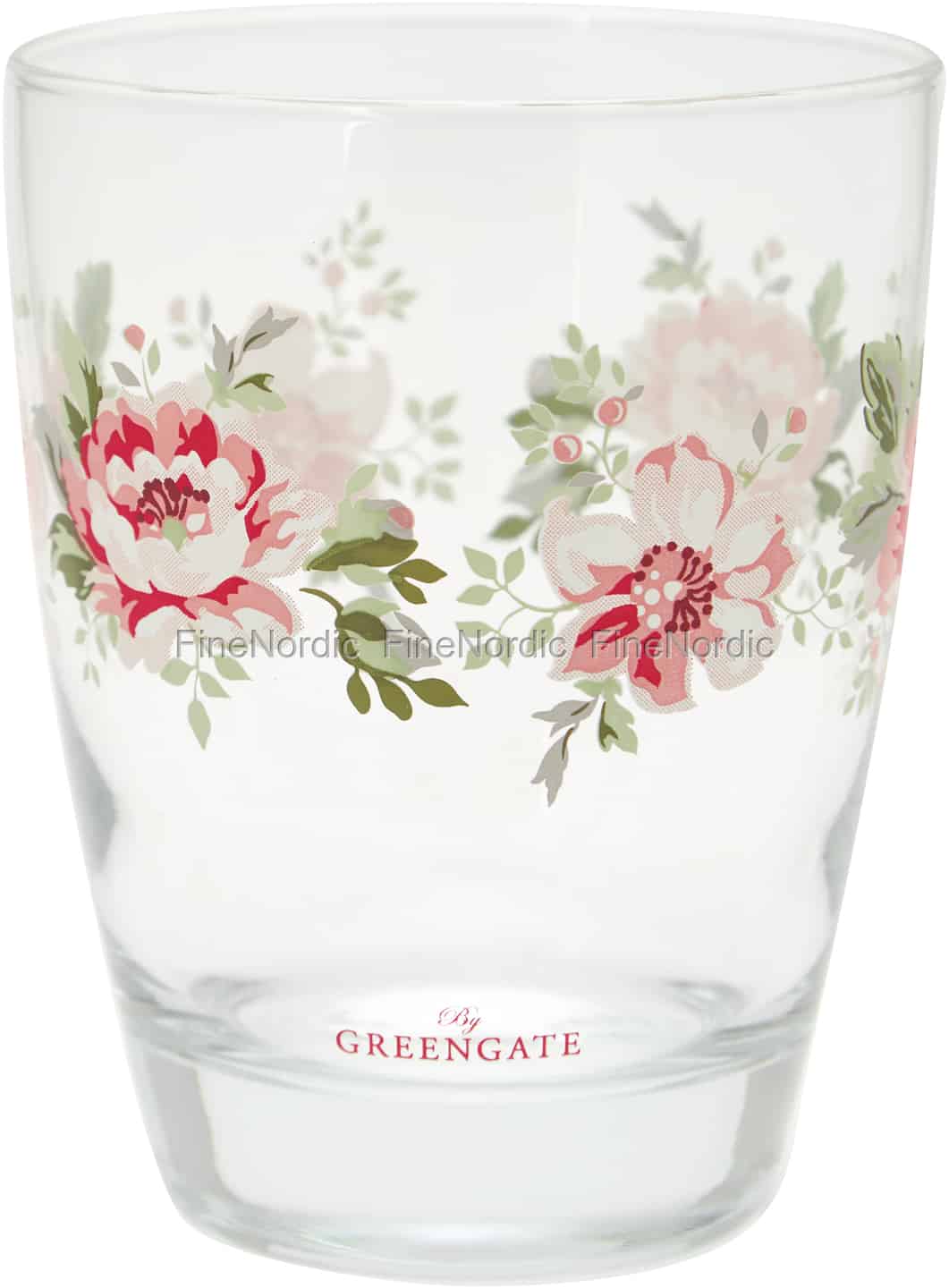 Ein hübsches Blumenmotiv umkreist mittig das Elouise White Wasserglas von GreenGate und die Wörter By GREENGATE sind entlang des unteren Randes des Trinkglases zu sehen. Der durchsichtige Trinkbecher ist nicht nur für Wasser geeignet, Säfte, Kakao und viele andere Getränke können Sie auch damit genießen. Er kann gut mit dem Elouise White Porzellan von GreenGate kombiniert werden und auch mit Stoneware von anderen GreenGate Serien. Ein hübsch gedeckter Tisch gewinnt noch mehr Interesse and Gestaltung, wenn verschiedene Materien darauf miteinander gemischt werden.