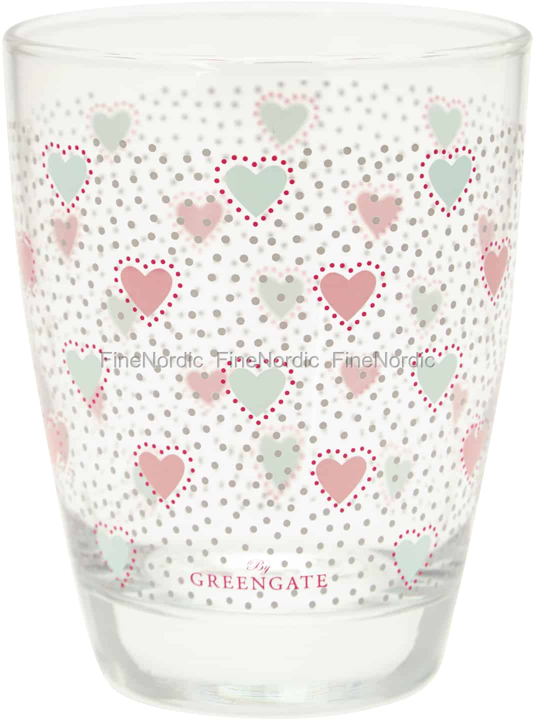 Das bezaubernde Wasserglas Penny White von GreenGate sieht einfach fantastisch aus mit seinen vielen kleinen Pünktchen und pastellfarbenen Herzen. Egal ob stilles Wasser oder Sprudel, aus dem Glas schmecken alle Sorten Wasser gut und trotzdem es Wasserglas heißt, können Sie es natürlich auch für viele andere Kaltgetränke nutzen. Das Trinkglas kann gut mit der Stoneware der Penny White Serie von GreenGate kombiniert werden und neben musterlosem Porzellan wie das von der Alice Pale Pink Serie sticht es besonders hervor.