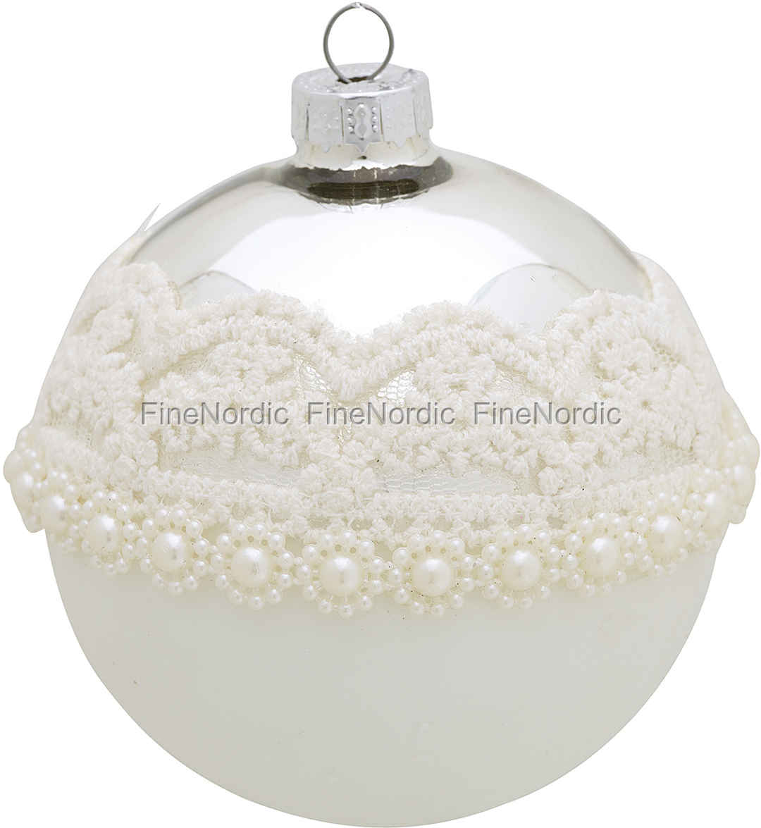 Weihnachtskugel - Ball Glass Flora White with Lace von GreenGate.