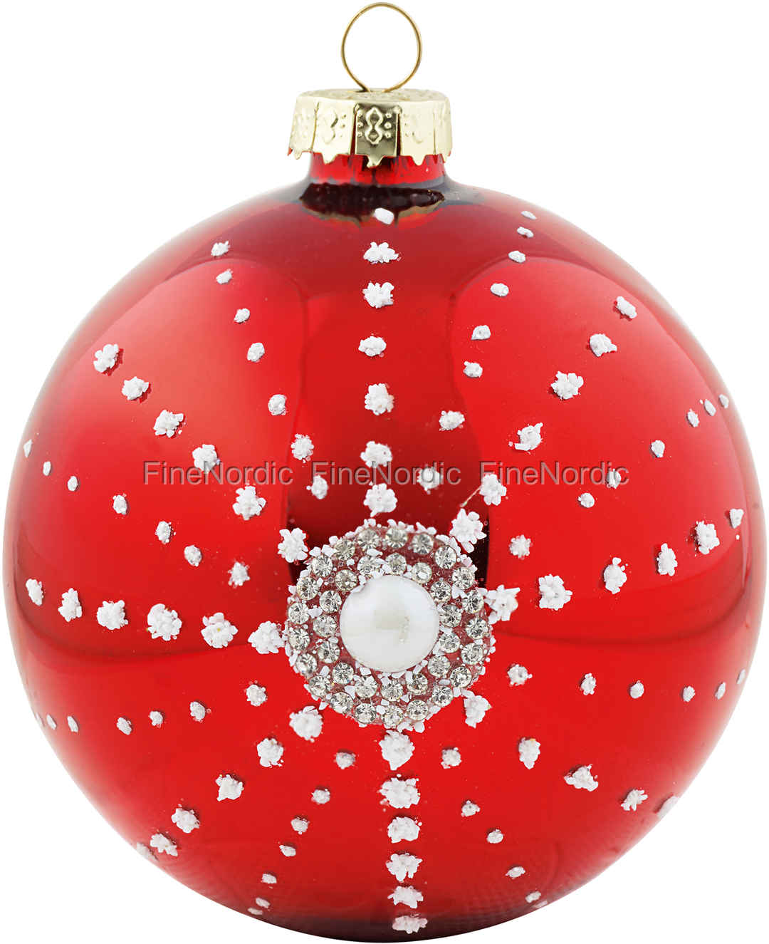 Weihnachtskugel Ball Glass Snowflake Red with Pearl Hanging von GreenGate.