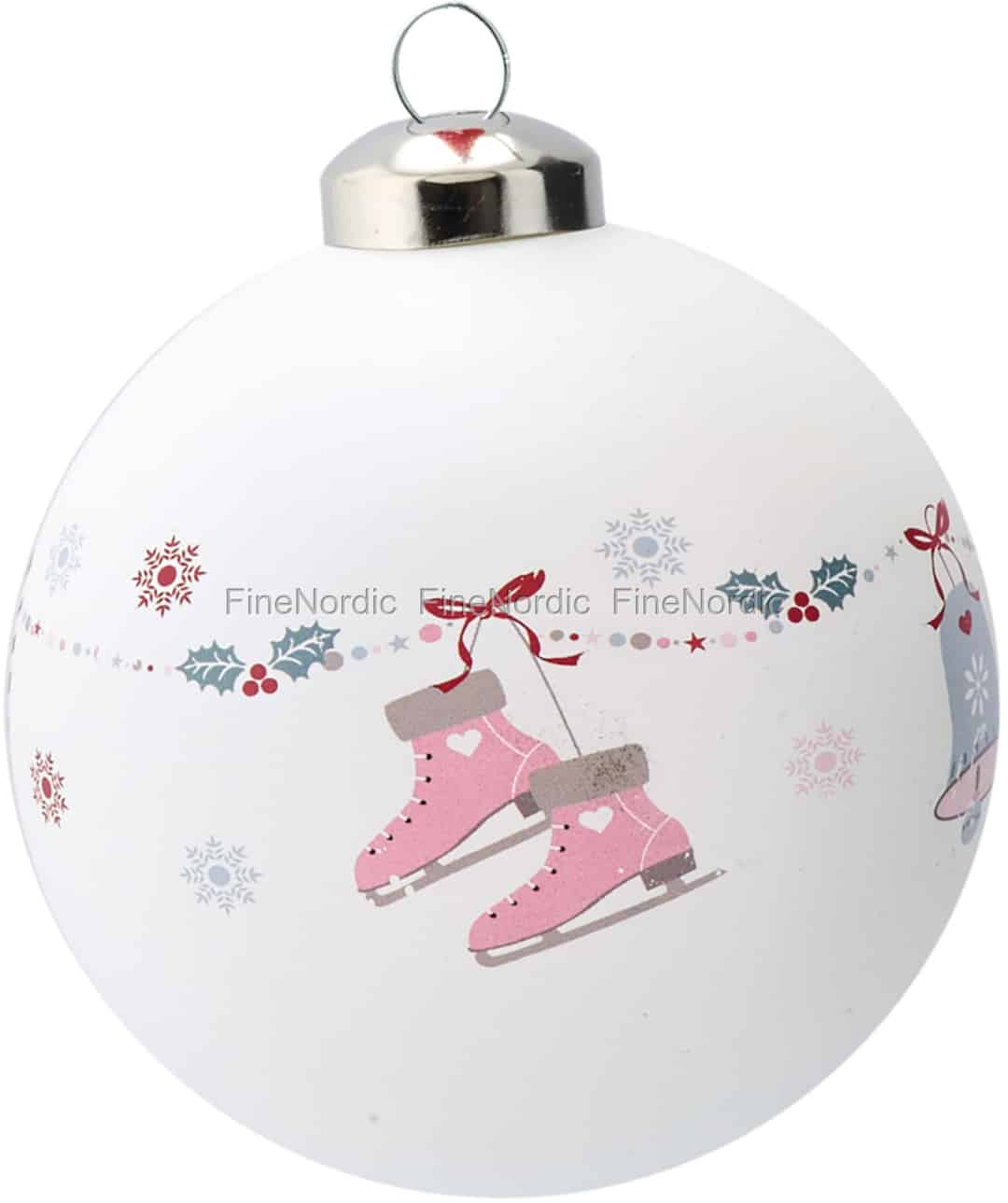 Schmücken Sie den Weihnachtsbaum mit dieser entzückenden Jingle Bell White Weihnachtskugel von GreenGate. Die Weihnachtskugel hat einen Durchmesser von 8 cm und ist mit einem hübschen, weihnachtlichen Muster verziert, auf welchem Schlittschuhe, Glocken und noch vieles mehr an einer Weihnachtsgirlande hängen. Schmücken Sie den Weihnachtsbaum damit oder hängen Sie es an einen Kiefernzweig in einer Vase. Werfen Sie gerne mal einen Blick auf all die verschiedenen Artikel die wir in der der Jingle Bell White Serie von GreenGate anzubieten haben. Sie finden sie alle in unserem Webshop.