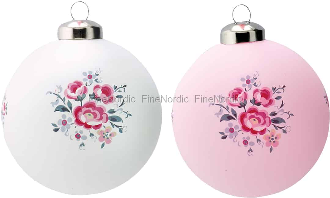 GreenGate Weihnachtskugel Glas Nicoline White & Pale Pink 2er Set
