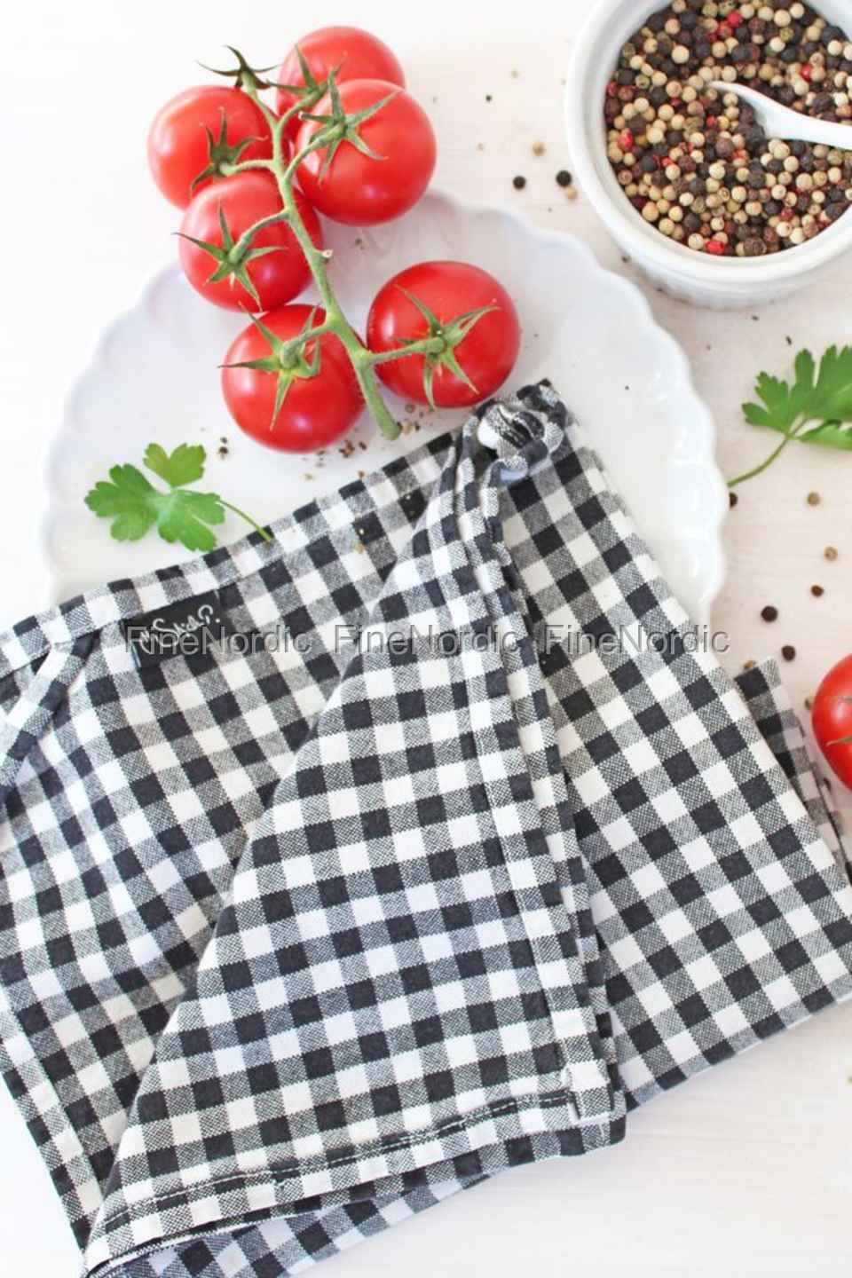 H. Skjalm P. Geschirrtuch - Große Karos - Schwarz / Weiß