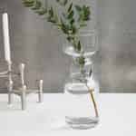 Wir lieben die einzigartige Form dieser House Doctor Glasvase Cinth. In diese durchsichtige Vase können ein paar blühende Zweige oder auch frisch gepflückte Blümchen aus dem Garten reingestellt werden. Sie können auch eine hübsche Zwiebelpflanze hineinlegen, wie einen Krokus oder eine Hyazinthe zB. Stellen Sie diese durchsichtige Glasvase auf eine Fensterbank, ein Regal oder den Tisch und Sie wird sofort zum Blickfang im Raum werden.