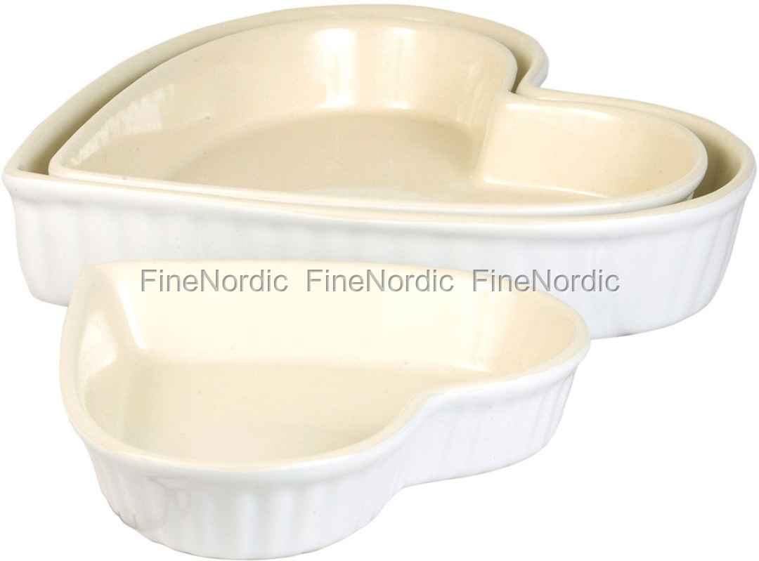 Mynte Pure White - Süßes weißes dreiteiliges Herzform-Set von Ib Laursen Geschirr zum Backen von leckeren Gratins oder Kuchen, für frische Salate oder zum Dekorieren mit jahreszeitlichen Accessoires in der Landhausküche.