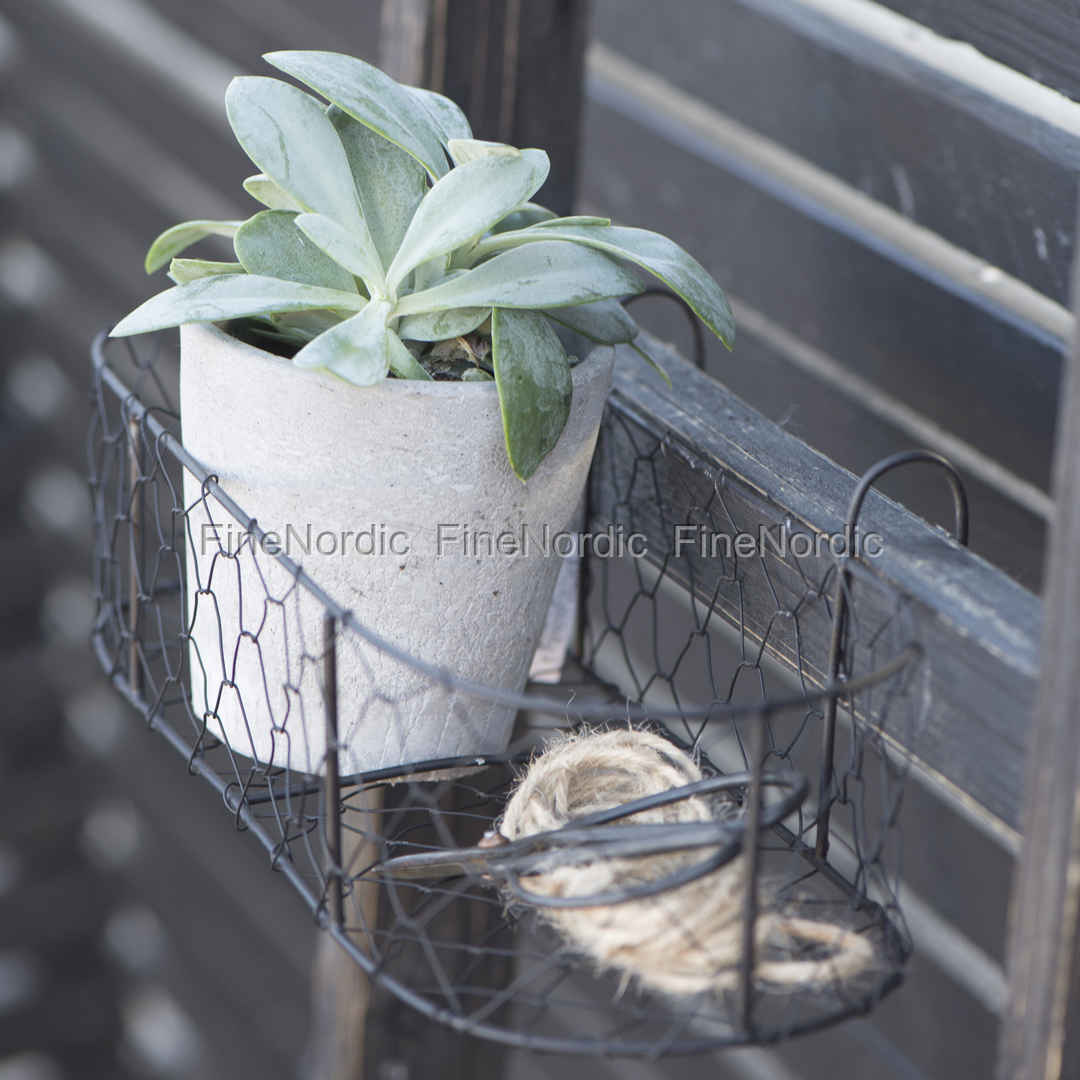 Ib Laursens kleiner Altankorb ist eine nützliche und hübsche Dekoration für den Altan oder Balkon. Sie können ihn einfach an seinen zwei Drahthaken aufhängen und dann Sachen hinzufügen, die Sie in Reichweite haben möchten. Der Korb ist 32 cm lang, 11 cm breit und 7 cm hoch. Sie können ein paar kleine Gartenutensilien darin aufbewahren oder dekorieren Sie ihn mit einem kleinen Pflanzen- oder Kräutertopf. Auch Stoffservietten, Tassen oder Schüsseln und andere Dinge, die Sie für den Balkontisch brauchen, können dort einen Platz finden. Er ist ein attraktiver kleine Drahtkorb mit unendlichen Möglichkeiten.
