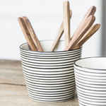 Querstreifen machen dick? Aber nicht die Streifen des hübschen Casablanca Becher von Ib Laursen. Die schwarzen Querstreifen auf hellem Hintergrund machen den Becher zu einem wahren Hingucker auf dem Tisch. Er lässt sich dazu auch gut mit anderen Casablanca Geschirrteilen kombinieren und ist nicht nur mikrowellengeeignet, sondern darf auch in die Spülmaschine. Ein attraktiver Becher für Kaffee, Saft und mehr. Auch als kleine Snackschale kann er verwendet werden oder auch zur Dekoration als Übertopf für Ihr Lieblingsküchenkraut. Wir nennen ihn den Becher für alle Fälle!