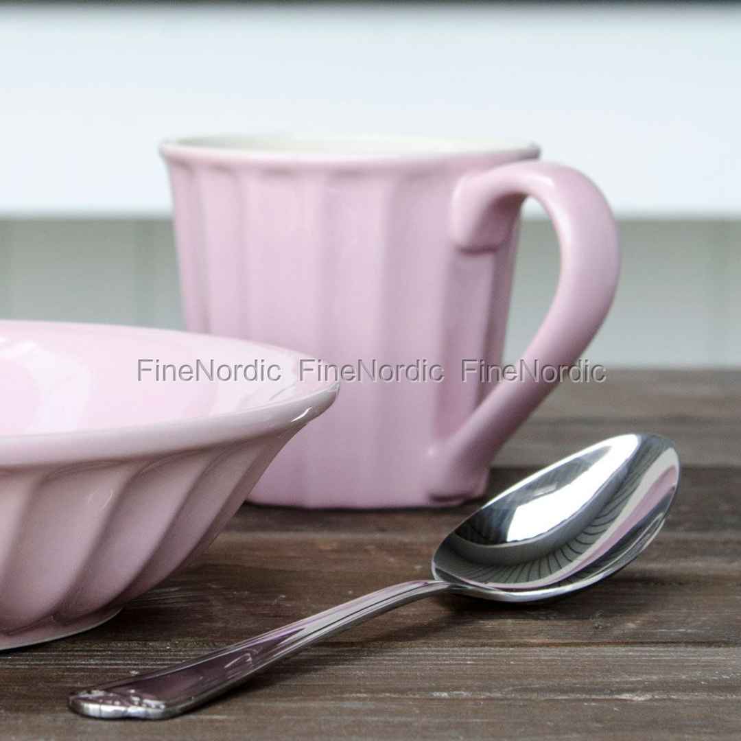 Der rosa Ib Laursen Mynte Becher mit Henkel ist ein formschöner Becher, der zum Kaffee- oder Teetrinken einlädt. Die für die Mynte Serie bekannte Rillenoptik, kombiniert mit der frischen English Rose Farbe, macht ihn zu einem wahren Hingucker auf dem Kaffeetisch. Wenn Ihnen diese Farbe zusagt, dann schauen Sie sich gerne auch die anderen Geschirrteile aus der Mynte English Rose Serie an. Falls Sie es etwas bunter auf dem Tisch mögen, dann kombinieren Sie den English Rose Becher mit anderen Farben aus der populären Mynte Serie.