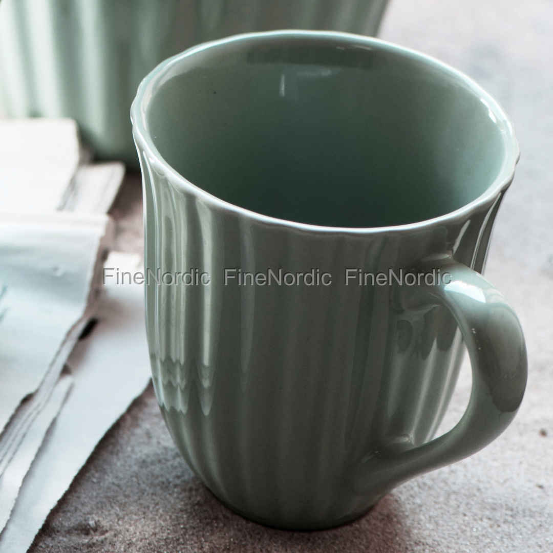 Becher mit Henkel und Rillen aus Keramik - Mynte Green Tea von Ib Laursen.