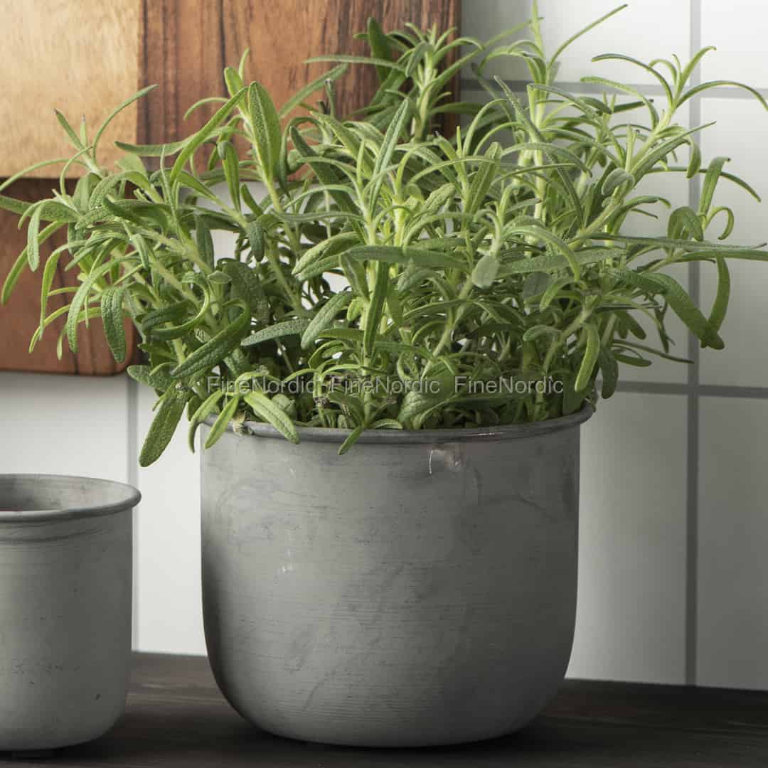 Ein einfacher und funktioneller Zinkblumentopf ist dieser große, runde von Ib Laursen. Der graue Übertopf ist die ideale Aufbewahrungslösung für Ihr Lieblingsküchenkraut oder für eine kleine grüne Topfpflanze. Der Metalltopf verleiht Ihrer Küchentheke oder Fensterbank etwas Vintage Flair. Er kann ganz alleine oder auch neben anderen Zinkpflanzgefäßen stehen. Wenn Sie mehr als einen Blumentopf benötigen, dann haben Sie die Wahl, alle in derselben Größe zu kaufen oder die verschiedenen Größen miteinander zu mischen. Die runden Ib Laursen Zink Pflanzgefäße sind auch in mittlerer und kleiner Größe erhältlich.