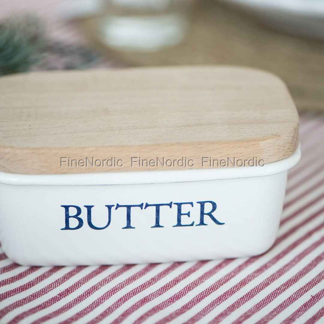 Ib Laursen Butterdose 'Butter' mit Holzdeckel - Emaille - Weiß