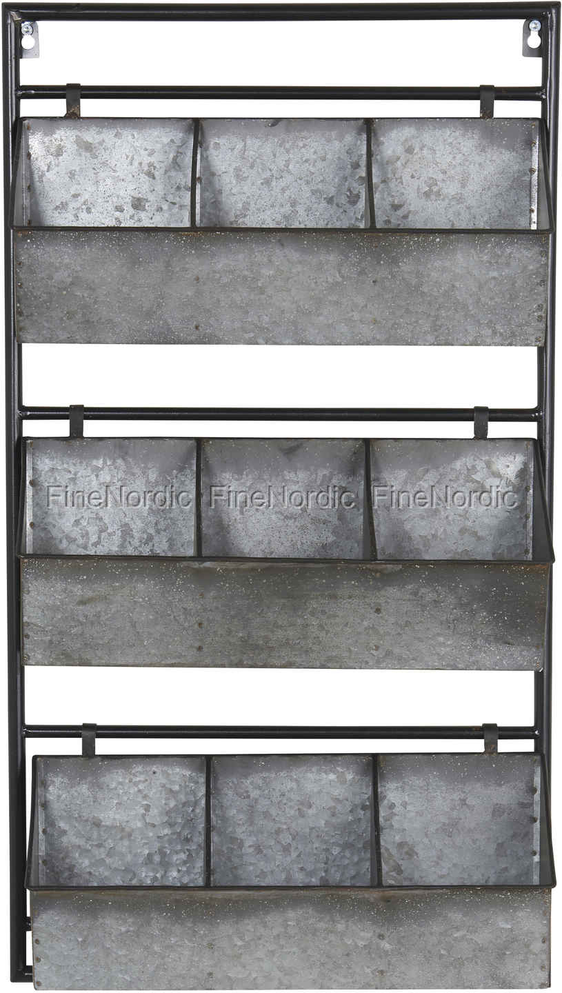 Mit diesem Display von Ib Laursen wird Ordnung halten zum Kinderspiel. An ihm sind 3 Kisten angehängt und jede Kiste besteht aus 3 Fächern in denen Sie verschiedene Sachen aufbewahren können. Das Display misst 70 cm x 36 cm und kann einfach an den beiden Öffnungen rechts und links oben aufgehängt werden. Dieses Metall Display ist ebenso praktisch wie dekorativ. Verwenden Sie es zum Aufbewahren von Bastelbedarf, Gartenwerkzeugen oder anderen kleinen Gegenständen. Es kann in jedem Raum des Hauses aufgehängt werden.