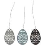 Diese drei Medium Eier auf verschiedene Arten und Weisen verwendet werden. Sie können sie an blühende Zweigen hängen, an einem Ostergeschenk befestigen oder als fröhliche kleine Überraschung einer Osterkarte beilegen. Jedes Ei hat das gleiche ausgestanzte Muster und die drei verschiedenfarbigen Eier harmonieren farblich sehr gut miteinander. Fügen Sie sie Ihrem Osterdekor hinzu oder mischen Sie sie mit den anderen Eier Größen, denn diese Eier sind auch in einer Large und Small Version erhältlich.