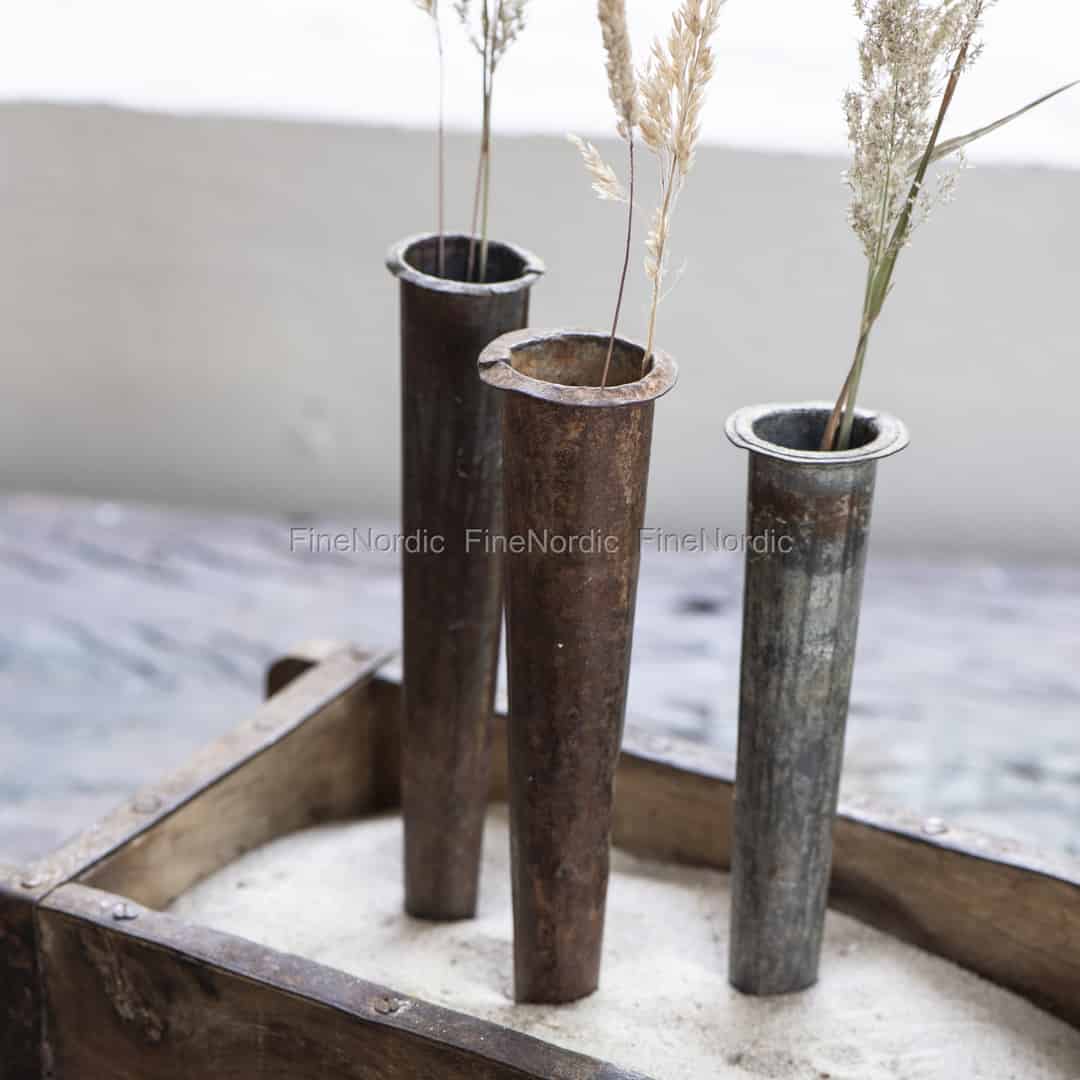 Die Ib Laursen Unika Eisform stammt aus Indien und wurde zum Einfrieren von Eis am Stiel verwendet. Die Metallform ist recycelt und ist nicht für Lebensmittel zugelassen, aber Sie können sie als Dekoration verwendet werden. Die Eisformen von Ib Laursen variieren in Form, Größe und Farbe und keine Form sieht genauso aus wie die nächste. Füllen Sie einfach etwas Sand oder dekorative Kieselsteine in eine Box, stecken Sie die Eisform hinein und schon können Sie ein paar getrocknete Blumen oder hübsche Gräser oder Halme darin präsentieren. Das rustikale Aussehen dieser Eis am Stiel Form bietet einen tollen Kontrast in einem modernen Haus und passt auch perfekt zu einer Einrichtung im Shabby Chic Stil.