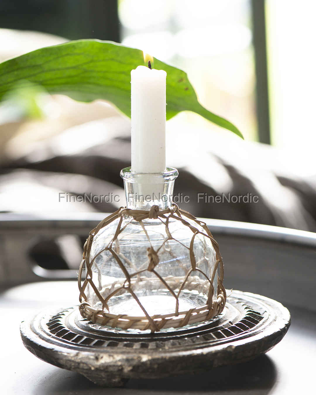 Flasche für Stabkerze Rattangeflecht von Ib Laursen.