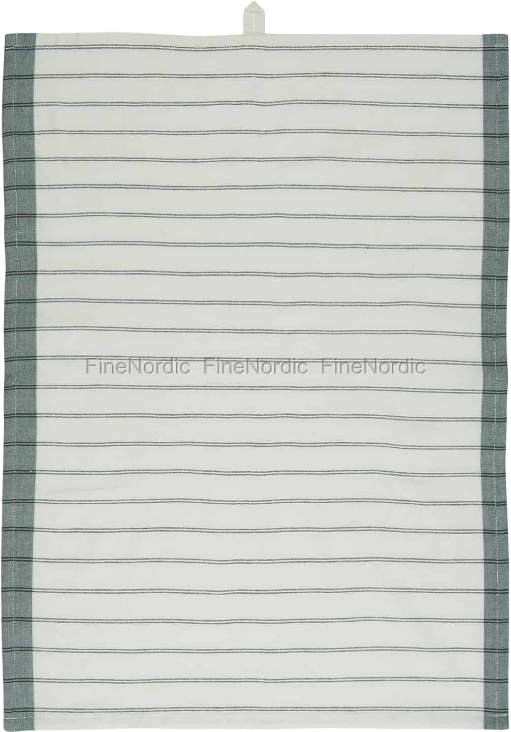Ib Laursen Geschirrtuch Weiß mit Grüne Ränder und Schwarze Streifen
