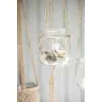 Suchen Sie nach einer neuen Dekoration für Ihr Zuhause? Wie wäre es dann mit diesem Ib Laursen Glas für Blumen mit einem Jute Aufhänger? Sie können etwas Wasser in das Glas geben und eine Wasserpflanze hinzufügen oder vielleicht einen Ableger, der Wurzeln schlagen soll? Sie können mit etwas Erde dort eine Pflanze einpflanzen oder dem Glas etwas Sand hinzufügen und es mit Muscheln dekorieren. Es kann auch als Kerzenhalter für ein Teelicht oder eine kleine Stumpenkerze verwendet werden! Hängen Sie es an dem Metallring des Macramé Halters im Schlafzimmer auf, oder auch im Wohnzimmer oder der Terrasse. Hängen Sie ihn einfach an die Stelle, wo Sie eine neue Dekoration haben möchten. Das Ib Laursen Glas ist auch eine nette Geburtstags- oder Gastgeschenkidee.