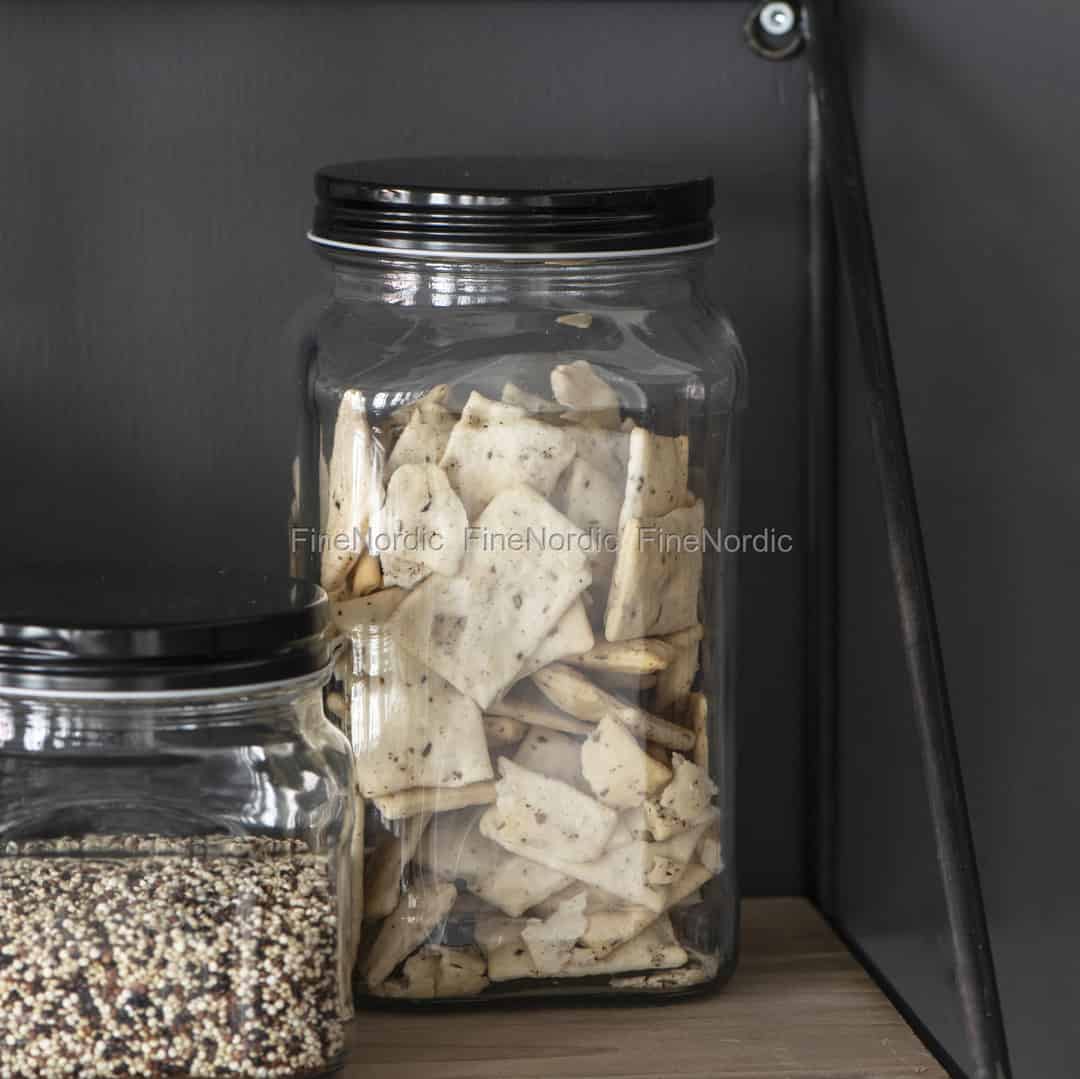 Mit der quadratischen Ib Laursen Glasdose mit schwarzem Deckel kann man seine Vorräte geschützt und geschmackvoll aufbewahren. Der schwarze, runde Metalldeckel der Vorratsdose bietet einen schönen Kontrast zu dem transparenten, quadratischen Glasbehälter. Dank dieses durchsichtigen Vorratsglases kann man auch sehr gut im Auge behalten, wieviel Vorrat noch vorhanden ist. Befüllen Sie das gutaussehende Aufbewahrungsglas mit Zucker, Mehl oder anderen Lebensmitteln und stellen Sie es am besten direkt auf ein Küchenregal oder die Küchentheke. Dort ist der Glasbehälter immer in greifbarer Reichweite und schaut dazu auch noch richtig gut aus. Die Ib Laursen Glasdosen mit schwarzem Deckel sind bei uns in verschiedenen Größen erhältlich.