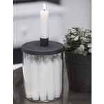 Mögen Sie es abends bei gemütlichem Kerzenlicht zu sitzen? Dann ist der Kerzenhalter für kurze Stabkerzen mit Metalldeckel von Ib Laursen genau das Richtige für Sie. Der schwarze Metalldeckel bietet einen attraktiven Kontrast zu dem durchsichtigen Glasbehälter. Er dient nicht nur als Kerzenständer, sondern gleichzeitig auch als Aufbewahrungsbehälter für die Kerzen. So ist immer gleich Nachschub bereit. Natürlich können Sie den Glasbehälter auch anderweitig dekorieren. Vielleicht im Frühling mit einem Osternest und kleinen Eiern bestücken, oder im Winter mit kleinen Kugeln und einer batteriebetriebenen Lichterkette dekorieren. Ihnen fallen bestimmt noch viele andere schöne Ideen ein. Der Ib Laursen Kerzenhalter ist passend für kurze Stabkerzen mit 2,2 cm Diameter.