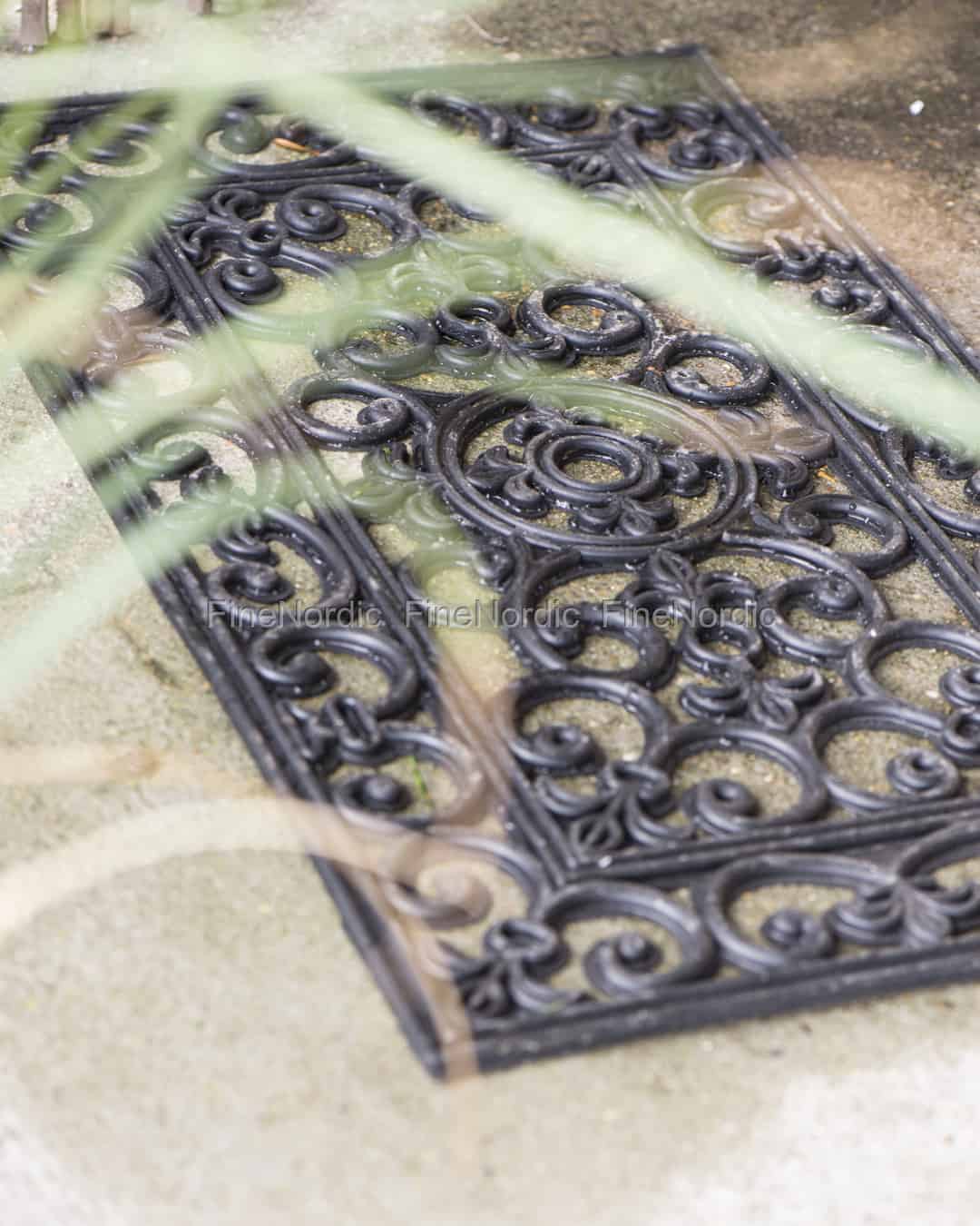 Die Gummimatte von Ib Laursen ist mit einem attraktiven, filigranen Muster geschmückt. Die schwarze Fußmatte verschönert jeden Hauseingang und auch auf der Terrasse oder im Wintergarten macht sie eine gute Figur. Die rechteckige, gemusterte Matte kann auch gut mit anderen Dekorationen an der Haustür kombiniert werden, wie mit einer Laterne z.B. oder einem Blumentopf. Schlicht schwarz ist der Fußabstreifer, und doch ist er ein äußerst attraktiver Blickfang für den Eingang, dank seines hübschen Musters und der zeitlosen schwarzen Farbe.