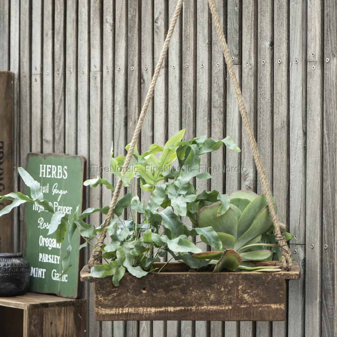 Das Hängetablett aus Ib Laursens Unika Serie wird in Indien aus recyceltem Holz hergestellt. Jedes ist ein Unikat und kann Knorren, Unregelmäßigkeiten und Kratzer aufweisen, die diese hängende Pflanzbox noch charmanter aussehen lassen. Sie können sie an Ihrer Juteschnur aufhängen und als Pflanzenkiste oder einfach als zusätzlichen Stauraum verwenden. Sie können sie in fast jedem Raum des Hauses aufhängen. Die braune Hängekiste verleiht dem Raum einen rustikalen Touch.