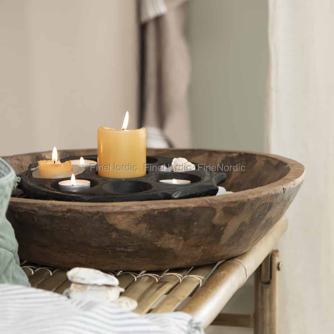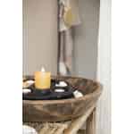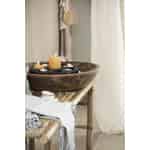 Der runde Holztrog aus der beliebten Unika Serie von Ib Laursen ist genau das: Ein Unikat! Der durchschnittliche Durchmesser eines Holztrogs beträgt etwa 40 cm, kann sich jedoch in der Größe unterscheiden, da jeder Trog in Form, Holzart und Größe einzigartig ist. Der hölzerne Trog wurde in einem indischen Haushalt verwendet, um den Teig für das berühmte indische Chapati Brot zu kneten. Er kann Flecken, Risse und Kratzer haben, aber das ist zu erwarten, da er ja viele Jahre lang benutzt wurde. Er ist ein sehr einzigartiges Dekorationsstück, das auf viele verschiedene Arten und Weisen und so ziemlich in jedem Raum des Hauses verwendet werden kann. Sie können ihn passend zur Jahreszeit dekorieren oder als Aufbewahrungsoption verwenden, um kleine Gegenstände an einem Ort zu sammeln. Stellen Sie ihn auf ein modernes Möbelstück und er wird als schöner Kontrast dienen und Ihr Interieur noch interessanter aussehen lassen. Eines ist sicher, kein anderer wird einen runden Holztrog genau wie diesen besitzen und das visuelle Interesse, das einem Raum hinzugefügt wird, wenn Sie das Alte mit dem Neuen mischen, ist einer der Gründe, warum Ib Laursens Serie Unika so angesagt ist.