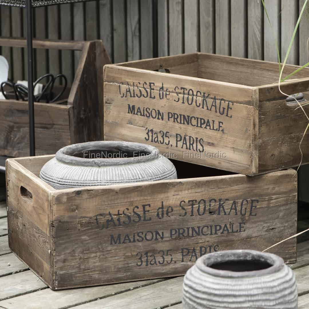 Holzkästen sind nicht nur sehr dekorativ, sie bieten auch eine geschmackvolle, zusätzliche Aufbewahrungsmöglichkeit. Schauen Sie sich zum Beispiel diese rechteckige Box von Ib Laursen an. Der braune Holzkasten ist mit dem Text: Caisse de Stockage, Maison Principale, 31a35, Paris, in schwarzen Buchstaben beschriftet, und sein rustikaler Look passt zu jedem Einrichtungsstil. Er fühlt sich in einem Shabby-Chic Stil Haus ganz wie zu Hause und bietet einen warmen und charmanten Kontrast in einem eleganten, im modernen Stil gehaltenen Haus. Sie können ihn leicht an den praktischen Öffnungen an beiden Enden halten und tragen, sodass das Bewegen kleinerer Gegenstände von A nach B zum Kinderspiel wird. Die Caisse de Stockage Holzbox ist auch in einer kleineren Version erhältlich.