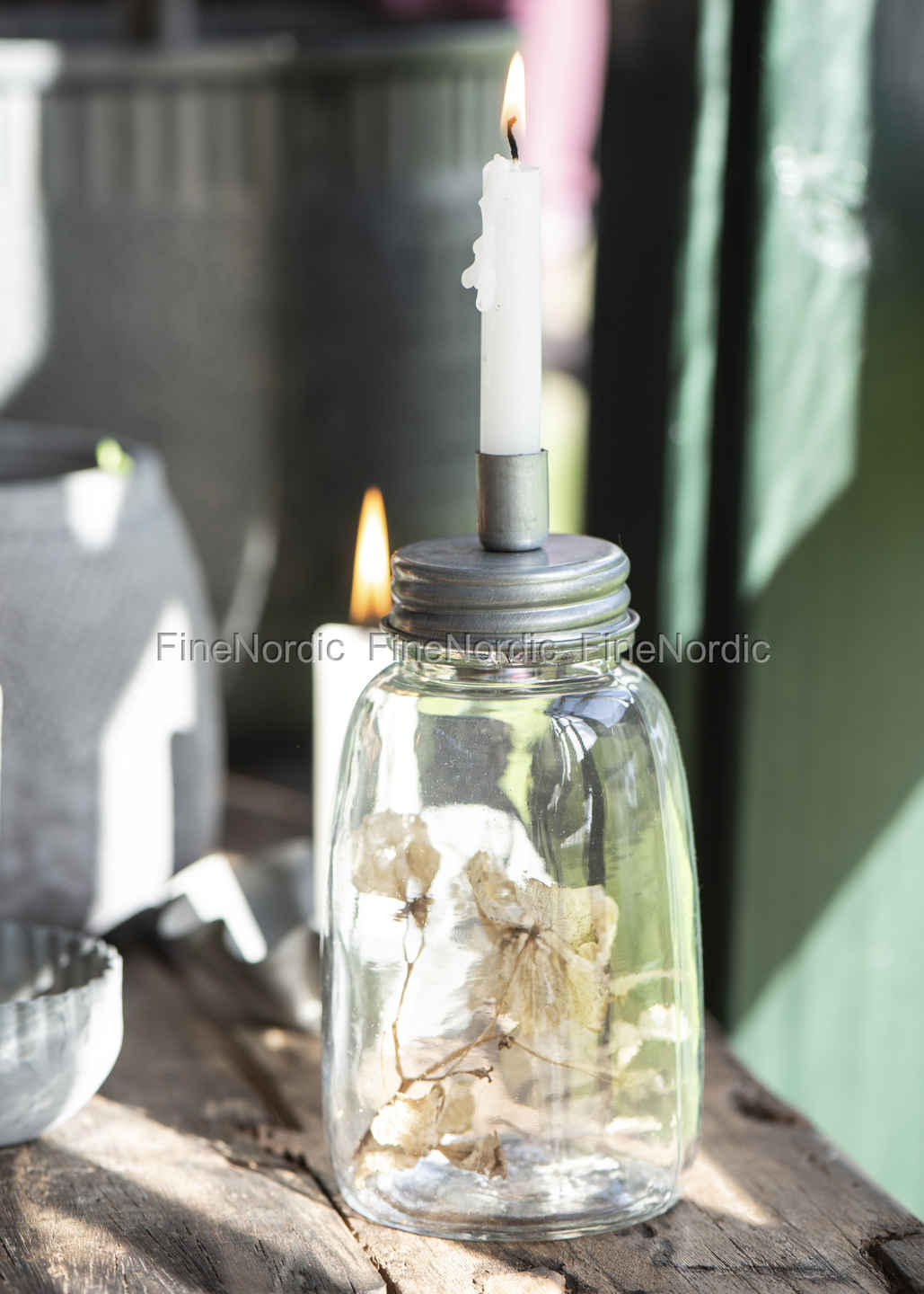 Der Kerzenhalter von Ib Laursen für dünne Kerzen und mit Metalldeckel ist ein attraktives Wohnaccessoire. Der Metalldeckel kann vom Glas abgeschraubt werden und Sie können das durchsichtige Glas je nach Jahreszeit dekorieren. Füllen Sie es im Frühling mit kleinen Ostereiern oder im Sommer mit etwas Sand und kleinen Muscheln. Dünne Kerzen mit einem Durchmesser von 1,3 cm passen in diesen Kerzenhalter von Ib Laursen.