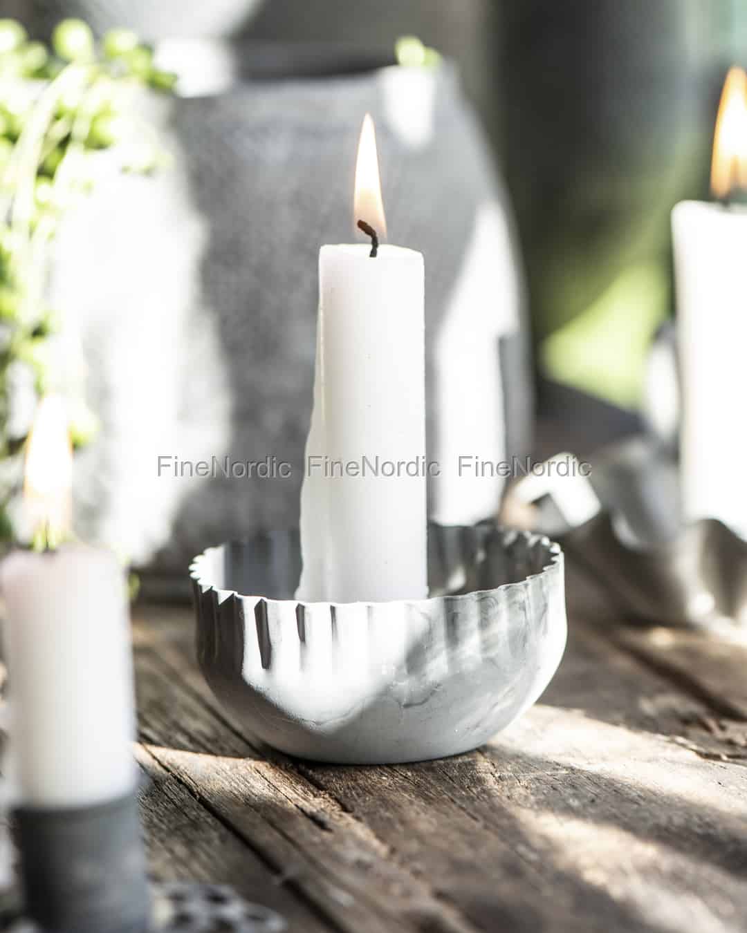 Der Ib Laursen Kerzenhalter mit gewellter Kante ist ein rustikaler Kerzenhalter für kurze Stabkerzen mit einem Durchmesser von 2,2 cm. Der Kerzenständer besteht aus Zink und seine graue Farbe und sein allgemeines Erscheinungsbild tragen zu seinem Vintage Look bei. Stellen Sie den Zinkkerzenhalter auf den Tisch, oder den Kaminsims und so kann er als zusätzliche Lichtquelle im Raum zu dienen. Der gewellte, graue Kerzenhalter von Ib Laursen bietet einen schönen Kontrast zu modernem Interieur und passt bestens in ein Landhaus oder einem Shabby Chic Zuhause.