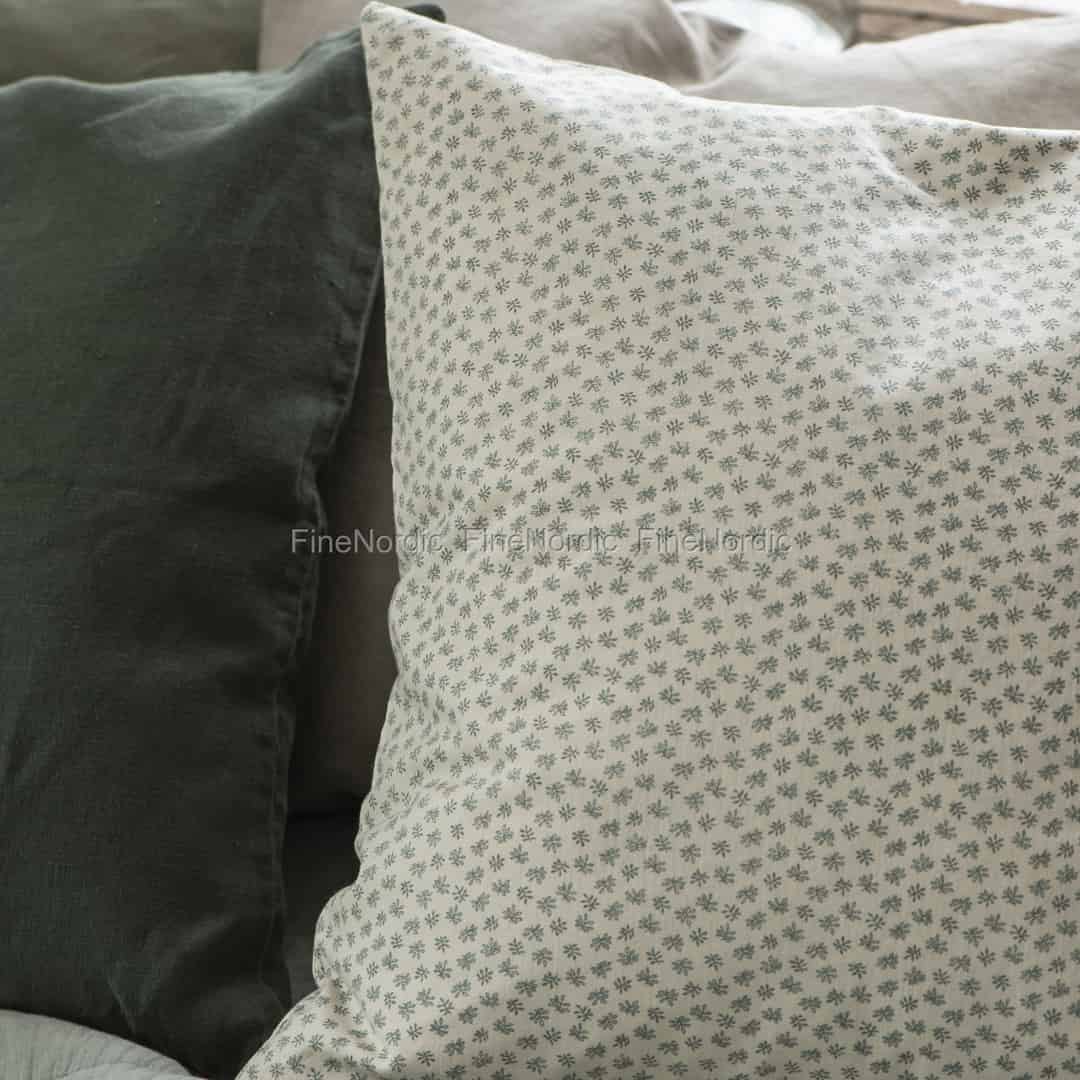 Ib Laursen Kissenhülle Creme mit Staubig Grün Muster 50 x 50 cm