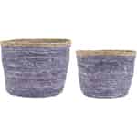 Im Haushalt gibt es so viele verschiedene Einsatzmöglichkeiten für Körbe, wie zB. auch für dieses 2er lila Korbset mit natürlichem Rand. Der eine Korb ist etwas größer als der andere und beide sind aus lila gefärbten Maisblättern gemacht, wobei der obere Rand der Körbe eine natürliche Farbe hat. Sie können als Aufbewahrungskörbe in nahezu jedem Raum des Hauses verwendet werden. Verstecken Sie darin das Spielzeug in den Kinderzimmern oder legen Sie im Wohnzimmer Ihre Zeitschriften und Zeitungen hinein. Sie können sie auch als Übertopf oder als Papierkorb verwenden, die Möglichkeiten sind endlos. Wir haben diese trendigen Körbe auch in den Farben Dusty Blue und Desert Rose anzubieten.