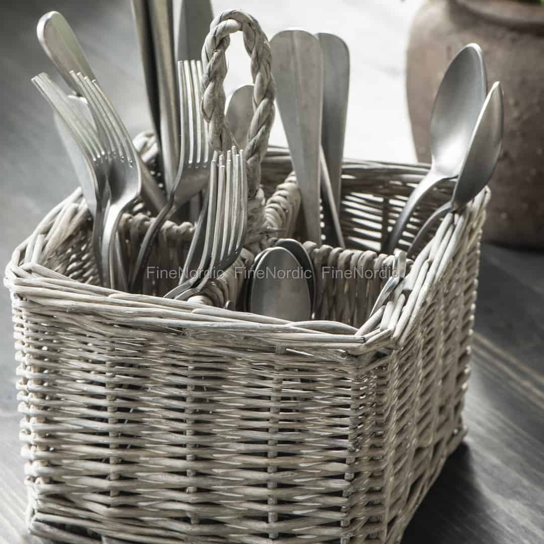 Der Ib Laursen Korb mit vier Fächern und Griff ist ein praktisches Küchenaccessoire und auch bei Partys sehr nützlich. In den vier Fächern können Sie Gabel, Messer, Esslöffel und Teelöffel gut verteilen und so ist das Besteck für jeden Gast griffbereit. Der quadratische Weidenkorb kann ganz einfach an seinem Griff zum Abendbuffet oder zum Gartentisch getragen werden. Der Weidenkorb ist auch im Alltag sehr praktisch. Füllen Sie ihn mit Besteck und platzieren Sie ihn auf den Esstisch und so kann sich jedes Familienmitglied selbst bedienen. Mit dem in vier Fächer aufgeteilten Weidenkorb von Ib Laursen können Sie das Besteck immer stilvoll für Ihre Familie und Freunde bereit halten.