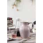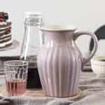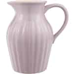 Dieser attraktive und formschöne Lavender Krug aus der beliebten Mynte-Serie von Ib Laursen fasst bis zu 1,7 Liter Wasser oder Saft oder Milch usw. Das bekannte gerillte Mynte Design und die Lavendelfarbe passen einfach wunderbar zusammen. Dieser große Krug wird noch schöner aussehen, wenn er neben anderen Ib Laursen Lavender Geschirrteilen auf den Tisch gestellt wird. Natürlich können Sie ihn auch mit anderen Mynte Farben mischen, um so einen noch interessanteres und lebendigeres Tischbild zu kreieren. Die schöne Lavendelfarbe finden Sie in unserem Webshop auch auf ein paar Ib Laursen Mynte Textilien.