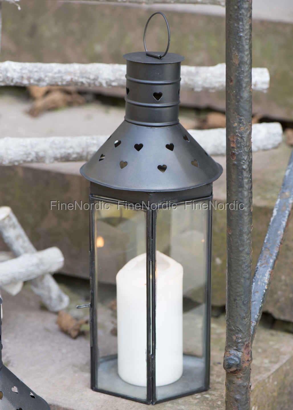 Laterne Herzmuster Factory Schwarz H 36,5 cm, von Ib Laursen.