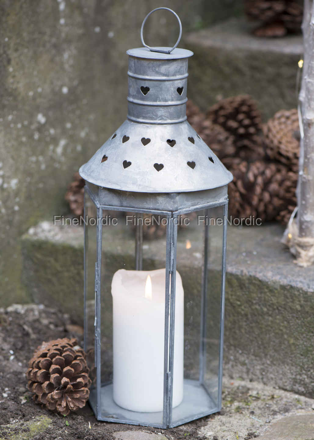 Laterne Herzmuster Grau H 36,5 cm, von Ib Laursen.
