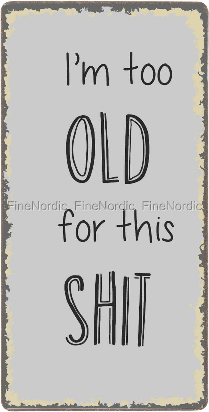 “ I am too old for this shit” (Ich bin zu alt für die Scheiße!), das ist doch mal eine Ansage! Und wie alt man genau sein sollte, um zu alt für “this shit“ zu sein, ist wohl relativ. Ist es der fünfjährige Junge, der es über das Schnullinuckeln sagt, oder eine weise alte Dame, die sich über Lappalien und kleine Dramen nicht mehr aufregen mag. Das Magnetschild „I’m too old for this shit“, ist eine witzige Geschenkidee für einen alten Freund oder Bekannten, oder man hängt es sich selbst an den Kühlschrank. Dann braucht man in bestimmten Situationen nur noch draufzudeuten, und alle um einen herum wissen Bescheid. Wenn Sie lustige Sprüche mögen, schauen Sie sich auch die anderen Magnet- und Metallschilder in unserem Shop an.