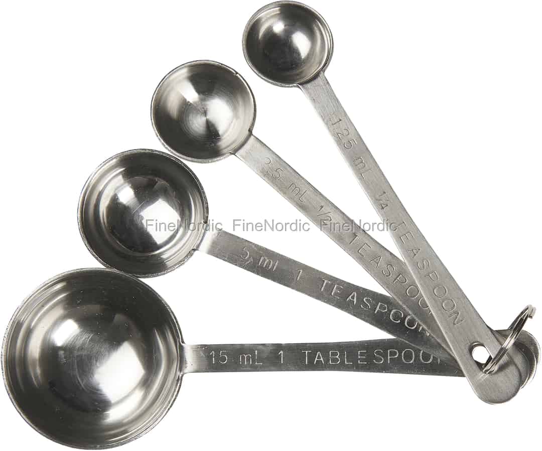 Das Messlöffel 4er Set von Ib Laursen ist ideal zum Messen von Gewürzen und Flüssigkeiten. Jeder Löffel ist deutlich mit Milliliter-, Esslöffel- und Teelöffelmaßen gekennzeichnet, so dass Ihre Kuchen und Ihr Essen immer perfekt gelingen werden. Dieses silberfarbene Löffelset besteht aus Edelstahl und alle vier Löffel sind durch einen ineinandergreifenden Ring miteinander verbunden, so dass alle Löffel zusammengehalten werden oder bei Bedarf auch herausgenommen werden kann. Das Messlöffel Set von Ib Laursen ist ein schönes Küchenaccessoire, besonders wenn Sie jemand sind, der gerne backt und kocht. Es ist dazu eine schöne Geschenkidee für die Hobbyköchin in Ihrem Bekanntenkreis.