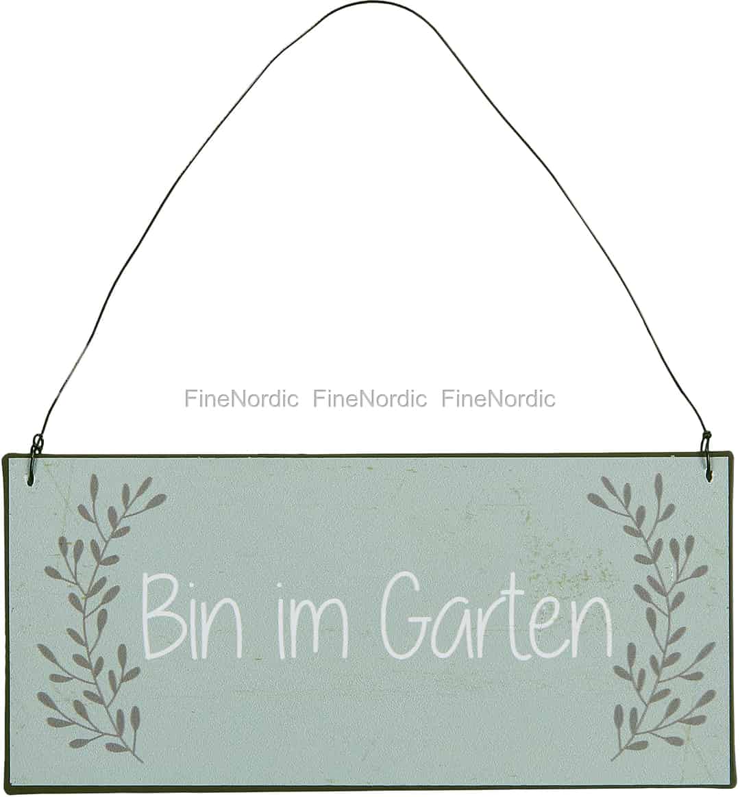 Wenn Sie das „Bin im Garten“ Metallschild von Ib Laursen an die Haustür hängen, wissen Ihre Freunde und Familie sofort, wo sie Sie finden können. Das rechteckige Metallschild kann ganz leicht mit dem angebrachten Metalldraht an einem Haken oder an der Türklinke angehängt werden. Das hellgrüne Schild ist ein sehr schlicht, jedoch sehr stilvoll aussehendes Schild. Das Ib Laursen Schild ist rechts und links von den in hellen Buchstaben geschriebenen Wörtern „Bin im Garten“ mit je einem grünen, blättrigen Zweig geschmückt. Das kleine Ib Laursen Schild Bin im Garten ist auch eine schöne Geschenkidee für einen lieben Menschen, der gerne viel Zeit in seinem Garten verbringt.