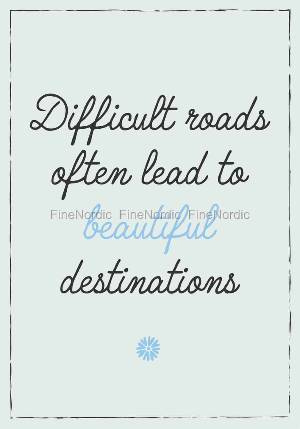 Metallschild Difficult roads often lead to beautiful destinations, von Ib Laursen.