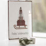 Ib Laursens großes Metallschild: Frohe Weihnachten ist eine schöne Dekoration für die Weihnachtszeit. Sie können die Wörter: "Frohe Weihnachten" darauf lesen und darüber ist ein Holzschlitten abgebildet, auf dem ein großer Stapel an Geschenken liegt. Die Geschenke sind mit Bändern an dem Schlitten festgebunden. Der Hintergrund ist hell und zeigt viele Schneeflocken, die ringsum den Schlitten fallen. Hängen Sie es auf oder stellen Sie es in ein Regal oder auf die Fensterbank und genießen Sie das schöne Aussehen des Schildes. Dieses Metallschild ist auch eine schöne Geschenkidee für jemanden, der Weihnachten liebt.