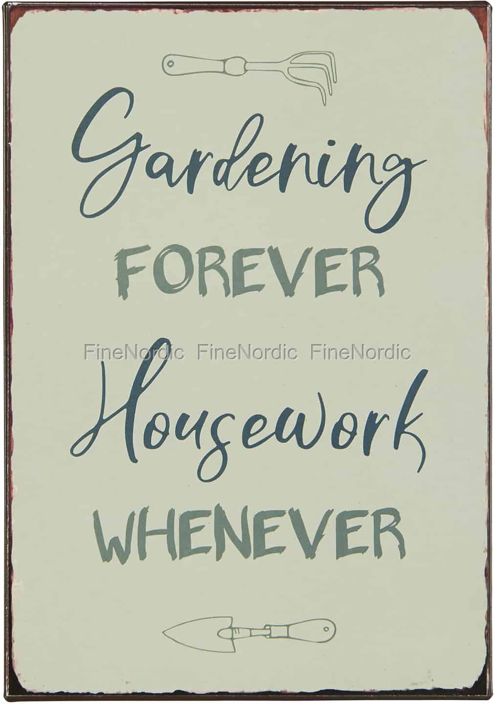 Ib Laursen Metallschild - Gardening forever Housework whenever