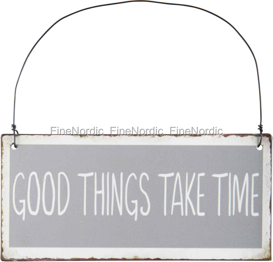 Das Metallschild von IB Laursen „Good things take time!“ (Gut Ding braucht Weile!) erinnert uns an genau das, denn wenn einem etwas richtig gut gelingen soll, dann braucht das halt seine Zeit. Rom ist ja auch nicht an einem Tag erbaut worden und erstmal abwarten und Tee trinken, ist sowieso die beste Idee. Das Schild soll uns in hektischen Alltag daran erinnern, das unnötige Eile nur schaden kann und wenn man mal einfach einen Gang runterschaltet kommt man genauso gut an sein Ziel. Und bis es so weit ist, will gut Ding halt Weile haben.