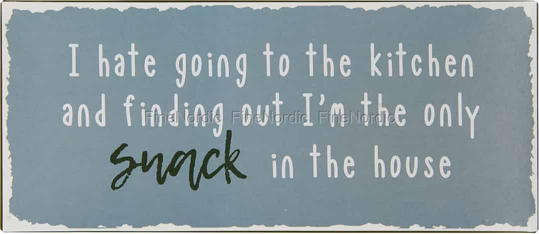 Dieses Metallschild von Ib Laursen zaubert sofort ein Lächeln auf unsere Gesichter. Sein witziger Spruch: I hate going to the kitchen and finding out I’m the only snack in the house (Ich hasse es, in die Küche zu gehen und herauszufinden, dass ich der einzige Snack im Haus bin) bezeichnet Sie amüsanter Weise als ein kleines leckeres Schnittchen, und ist dazu auch eine nette Erinnerung daran, dass es bald mal wieder an der Zeit wäre, einen Supermarkt aufzusuchen. Wir lieben seine Farbkombinationen und sein lässiges Aussehen. Hängen Sie das Schild im Flur, im Esszimmer oder in der Küche auf und beobachten Sie den amüsierten Blick Ihrer Gäste, wenn sie das Schild lesen. Wir bieten eine Vielzahl von Ib Laursen Metallschildern in verschiedenen Größen, Sprachen und mit einer Reihe unterhaltsamer Zitate an. Es gibt Schilder mit nur einem einzigen Wort darauf, Schilder für verschiedene Jahreszeiten und auch Schilder, die etwas zum Nachdenken anregen.